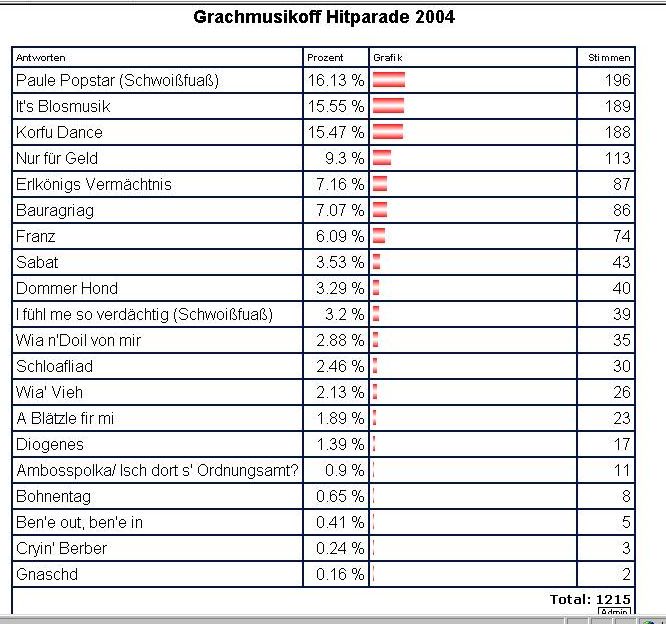Endergebnis der Gracher-Hitparade anschauen. Hier klicken.
